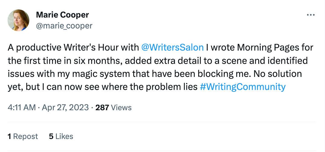 *Or simply show up and write with us at Writers' Hour each weekday. 👉 Sign up here.